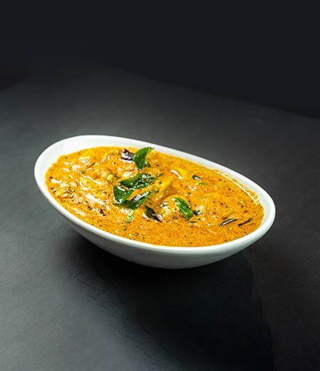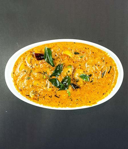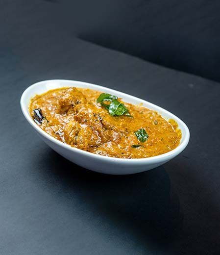 Prepared with fresh chicken pieces marinated in chili, coriander, and black pepper, the curry is slow-cooked with coconut oil, curry leaves, shallots, and roasted masala for a deep, smoky flavor. The use of coconut milk lends a subtle creaminess, creating a perfect harmony of spice and richness that defines authentic Kerala cuisine.