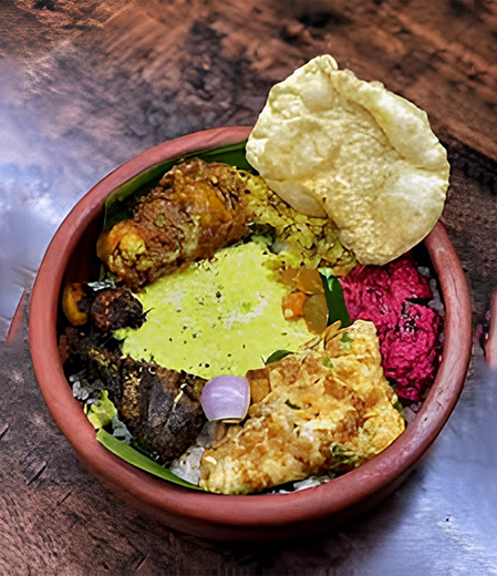 Chatti Chor, meaning “meal in a clay pot,” is a timeless tradition from Kerala that reflects the richness of South Indian cuisine. Historically, this style of serving food was common among farmers and travelers who carried meals in earthen pots. The clay not only kept the food fresh and warm but also infused it with a natural earthy taste.