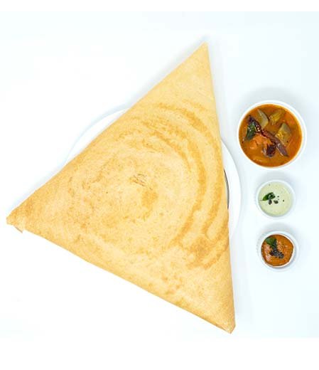Paper Dosa is a thin, crispy South Indian crepe made from a fermented batter of rice and urad dal, known for its large size and wafer-like texture. Originating from Tamil Nadu and Karnataka, it is typically served as a tiffin or breakfast item in traditional messes, hotels, and street-side dosa stalls.