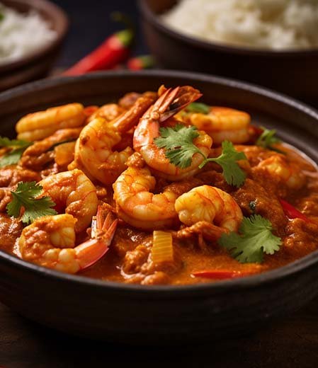 Prawn Masala is a flavorful South Indian seafood dish made with fresh prawns simmered in a thick, spiced onion-tomato gravy. Popular in the coastal regions of Tamil Nadu, Kerala, and Andhra Pradesh, this semi-dry curry highlights the natural sweetness of prawns balanced by bold masala spices.