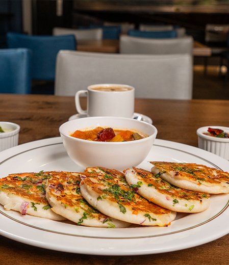 Made from the same fermented batter of rice and urad dal, Thattil Kutti Dosa is cooked on a hot griddle and often topped with a light brush of chutney, ghee, or podi. Some variations include a small dollop of potato masala or grated coconut for added flavor. Its small size makes it ideal for serving in multiples, often enjoyed with hot tea.